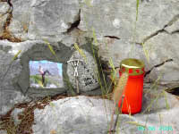seine Angehörigen an der Ruine einen kleinen Gedenkstein mit einem Bild von