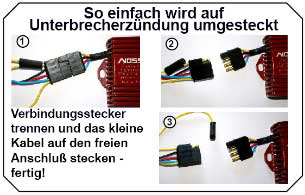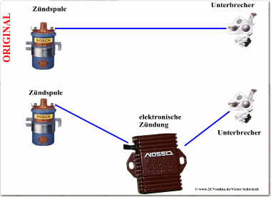 Zündung wird zwischen Unterbrecher und Zündspule geschaltet und verrichtet