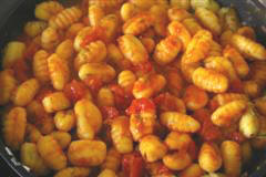 Gnocchi, Olivenöl, Knoblauch, gehackte Tomaten in der Dose, evtl. Rosmarin