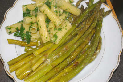 Dazu passen Spaghetti oder andere Pasta mit Kräutern.