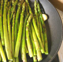 Olivenöl in einer Pfanne erhitzen und den Spargel mit einer
