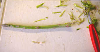 Spargel am unteren Ende (heller Bereich) schälen und waschen.