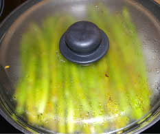 zudecken und die Hitze abschalten. Den Spargel 10 bis 20 Minuten ziehen