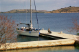 Boot fest vertäut in der Marina von Iz Veli.